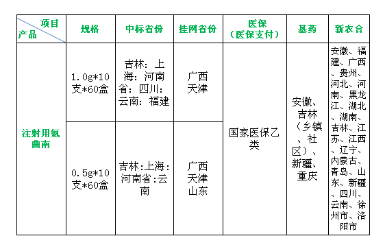 【成 份】本品主要成份為氨曲南,輔料為L-精氨酸。